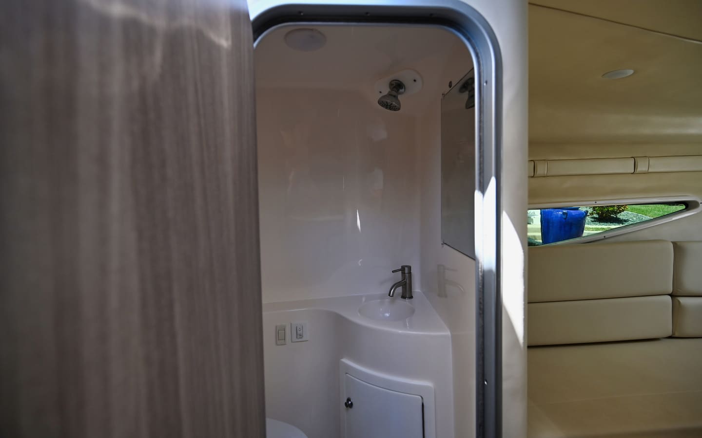 Whether you’re seeking refuge from the heat of the day or a cozy escape on a cool evening, the Regal 26XO offers the luxury of air conditioning, ensuring a comfortable cabin temperature at all times. This feature provides an oasis of comfort for your weekend adventures, making it perfect for year-round enjoyment.