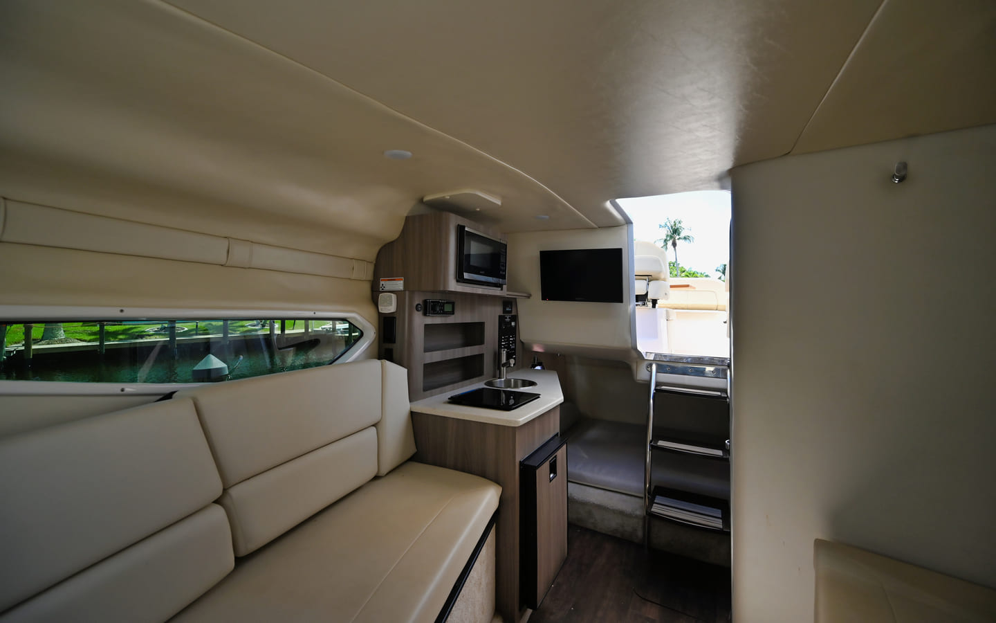 The cabin provides ample space for you and your guests to unwind. Whether you’re sharing stories, dining, or simply enjoying the scenic views from the large windows, the Regal 26XO’s cabin ensures you have all the room you need to relax in style.